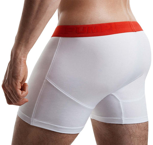 PUMP!Athletically cut white red long boxer shorts High-quality microfibre with a pouch made of mesh fabric Striking red waistband with PUMP! Logo