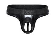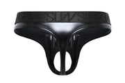 SUKREW U-Style Classic Thong With Oval Front Wet Look in Fetish Black 36