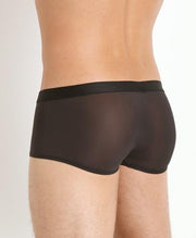 This unique boxer brief incorporates an advanced crossed elastic system that hugs and enhances your package, and the super-stretchy, see-through nylon/spandex fabric leaves little to the imagination.